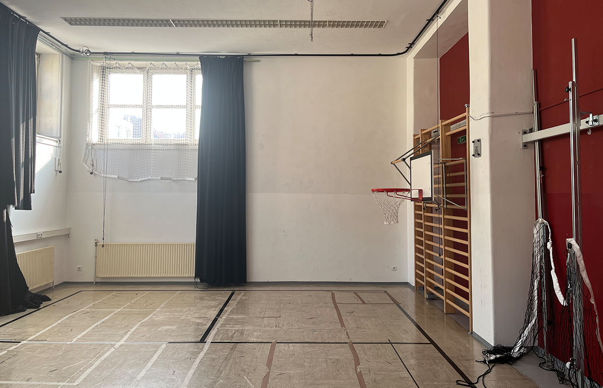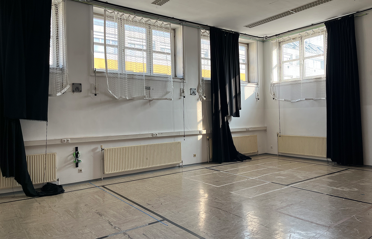 In dem Gebäude von Wiener Wohnen gibt es neben den Arbeitsräumlichkeiten der Künstler:innen von multi pull auch einen rund 80 m2 großen Theatersaal, Gesamtnutzfläche rund 110 m2.