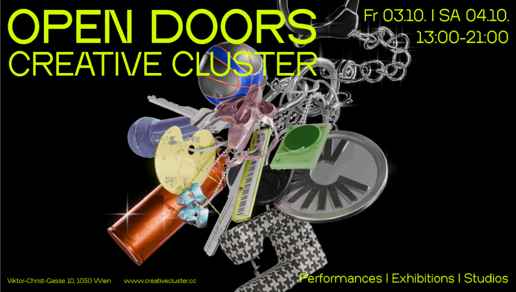 Am Wochenende 03.–04. Oktober 2025 öffnet der Creative Cluster in Wien Margareten mit einem vielfältigen Rahmenprogramm wieder seine Türen. Es ist möglich einen Einblick in die Arbeit der Künstler:innen und Kreativen vor Ort zu bekommen und das Zwischennutzungsprojekt kennenzulernen.